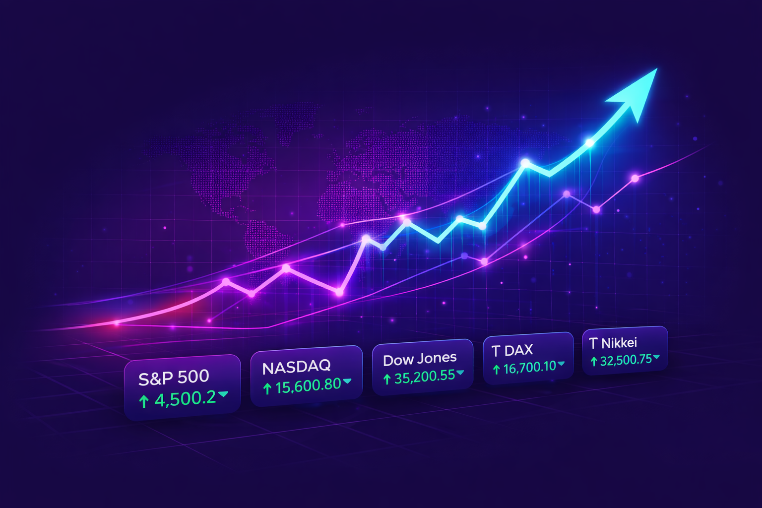 - 30+ global indices including S&P 500, NASDAQ, Dow Jones, DAX, FTSE, Nikkei